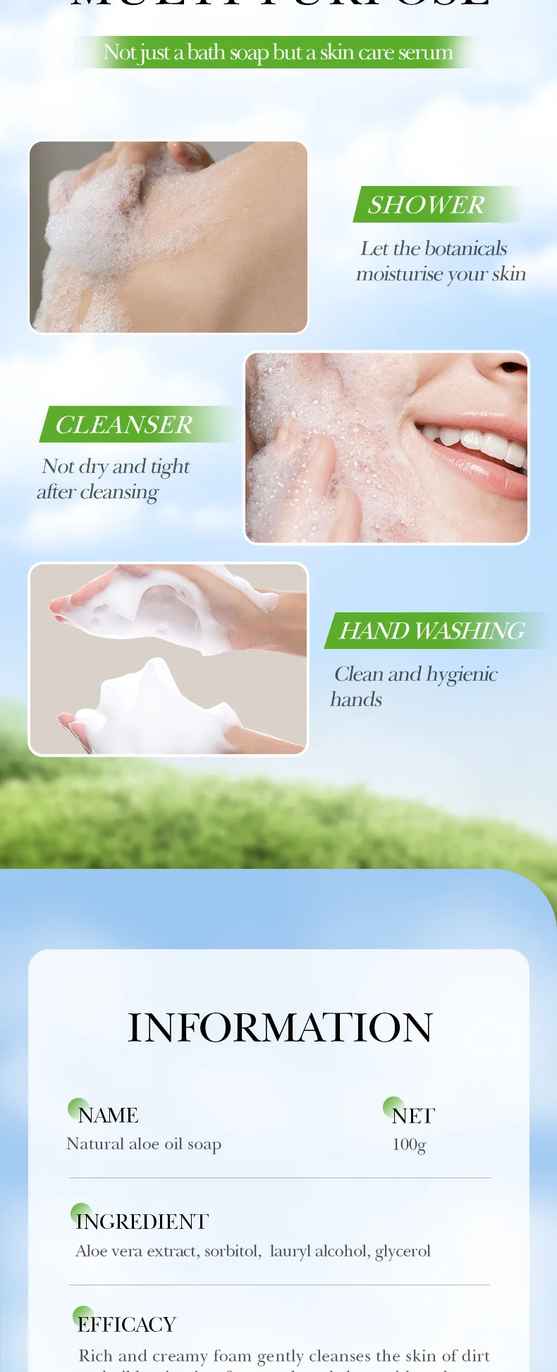 100g Natural Aloe Vera Essential Oil Soap Body Cleaning Leg Body Cleansers Brightening Face Soap Tender Skin Care Beauty