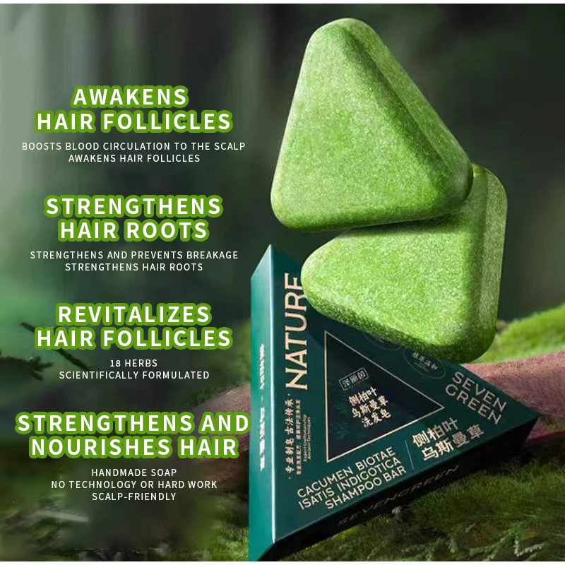 120g Seven Green Platycladi Usman grass handmade shampoo soap Refreshing and Flushing Healthy Anti-removal Hair Nourishing Clean