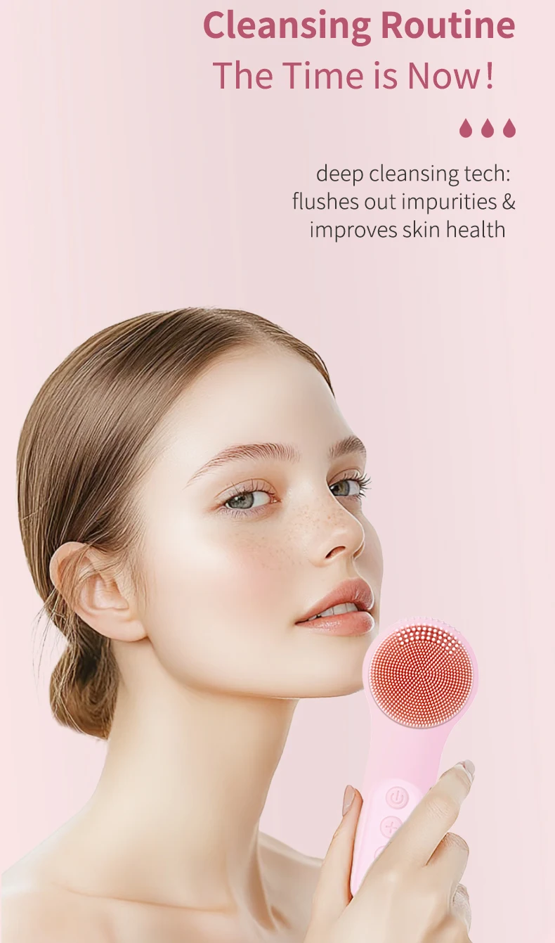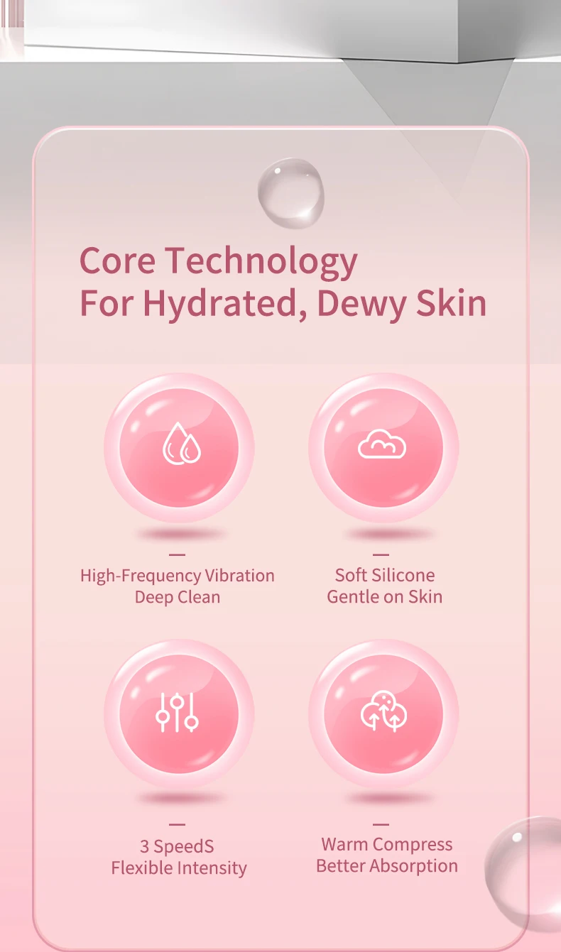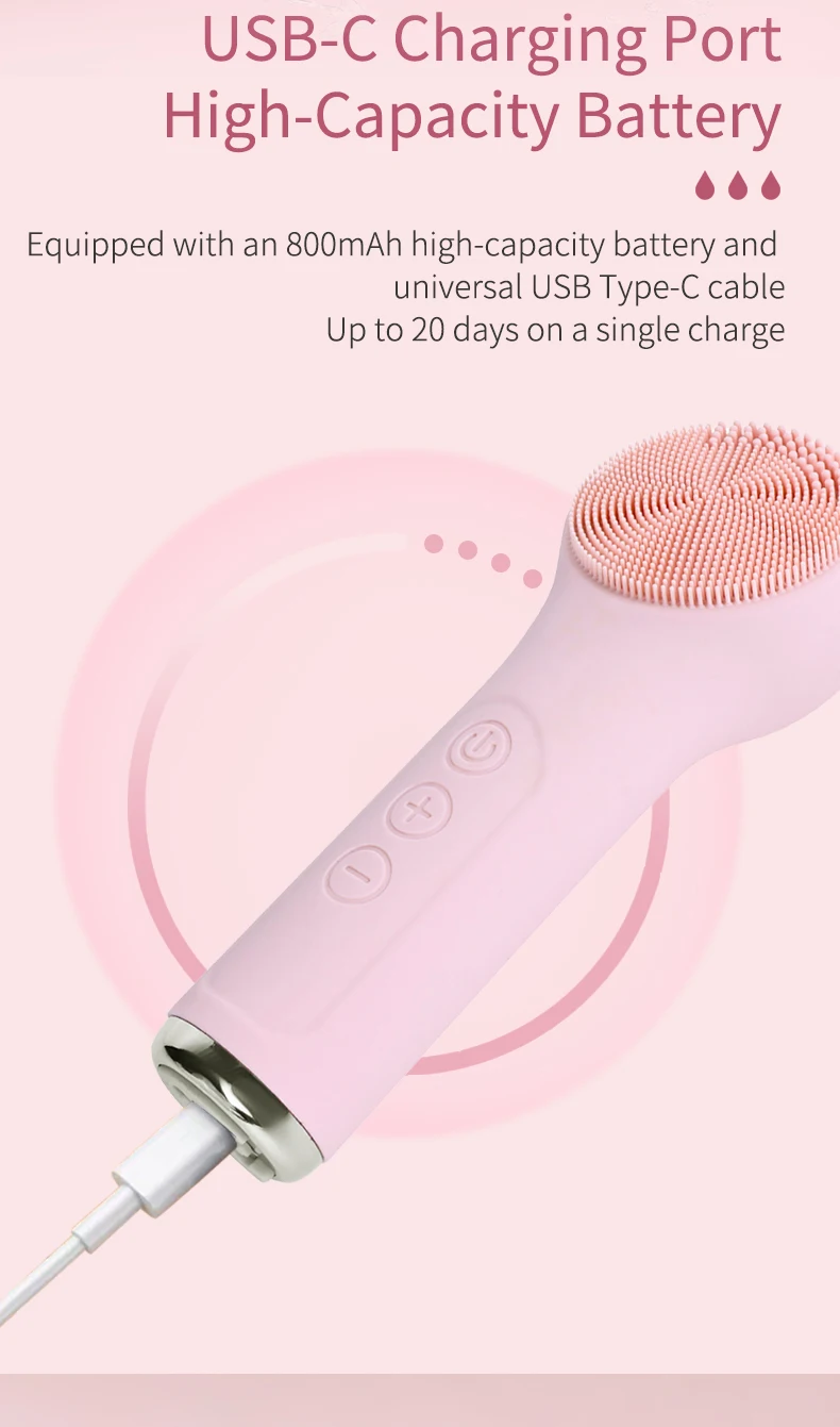 【Dual-Sided Functionality】: Cleansing side (sonic vibrations) + Heating side (spa massage). Experience deep cleansing with our innovative dual-sided silicone facial brush, tailored for various skin types.