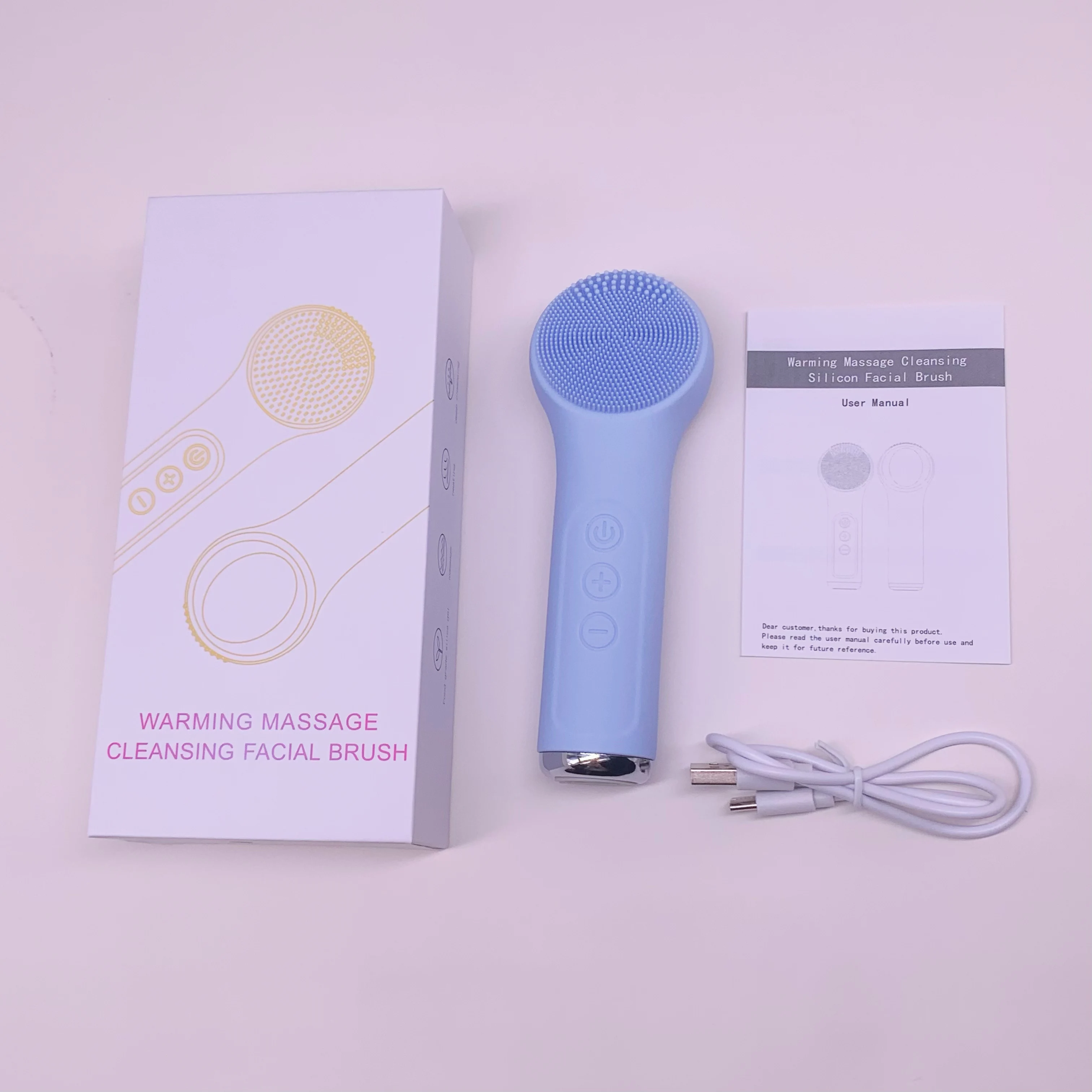 Electric Waterproof Silicone Facial Cleansing Brush, Deep Cleanse Makeup Remover Heating Massage Beauty Tool for Women