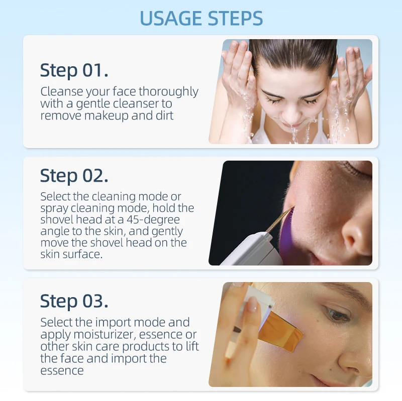 1.With compound double-wave pulsation technology, the cleaner can go deep into the pores, remove dirt and aging cells without harm to the skin.