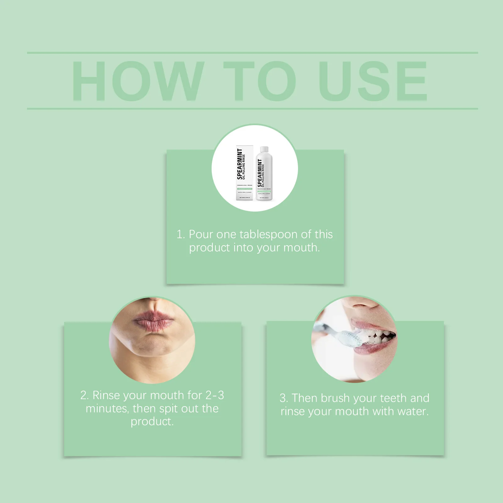 2. Rinse your mouth for 2-3 minutes, then spit out the product.