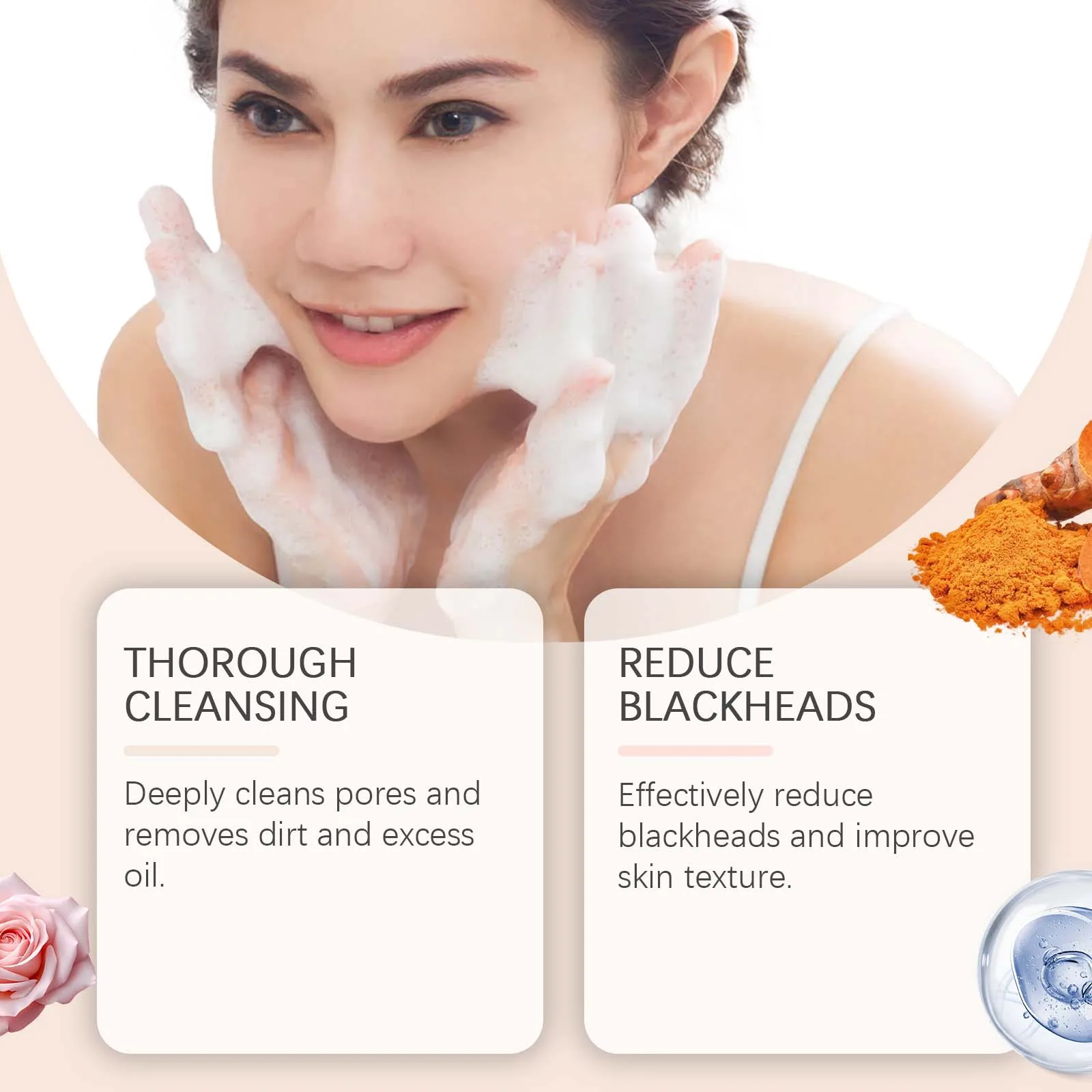 Turmeric Foam Cleanser Brightening Facial Wash Oil Control Hydrating Non Drying Formula With Brush Head Blackhead Removal 100ml
